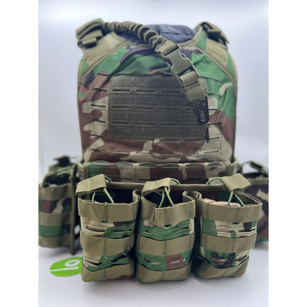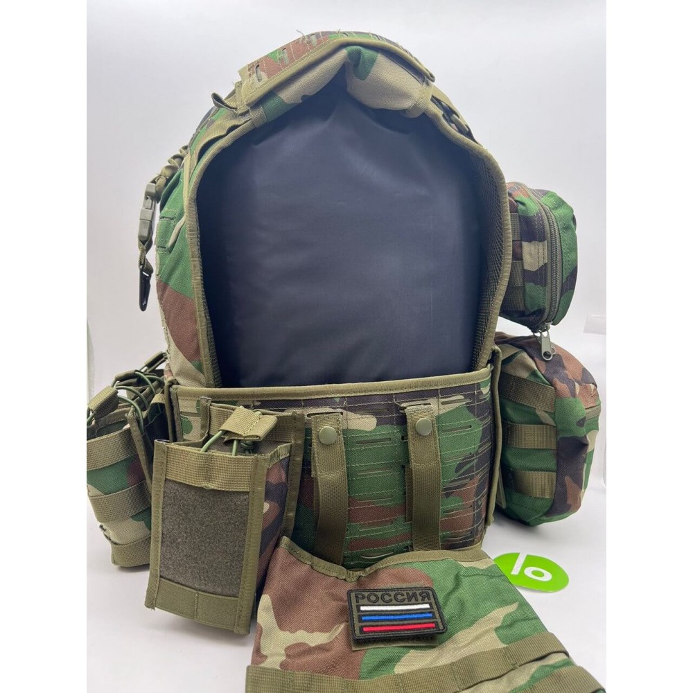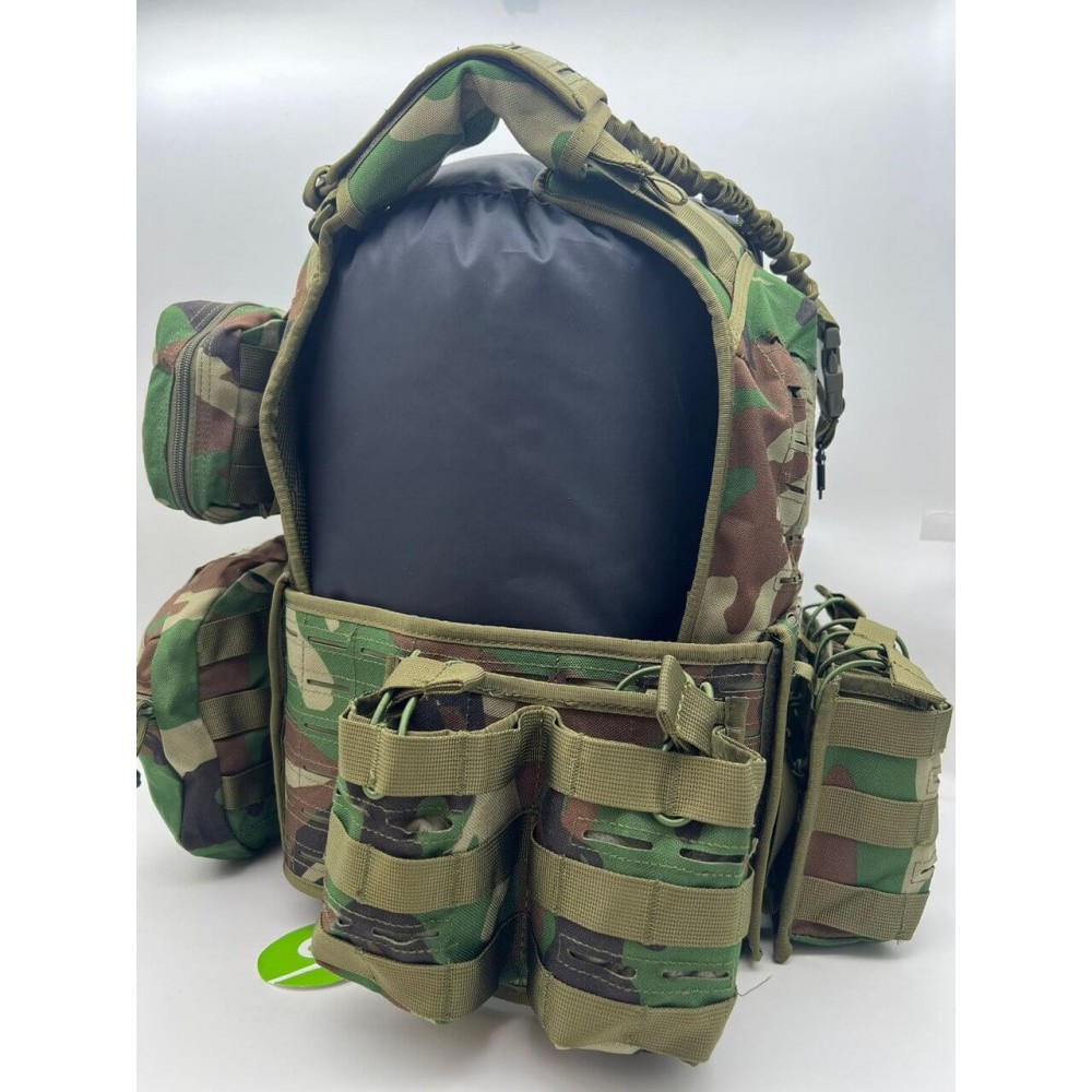- 5 основных отсека под рожки, 1 под 2 подсумка на спине с возможностью переустановки, сбросник сбоку