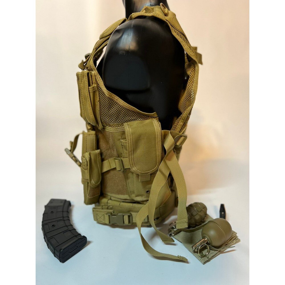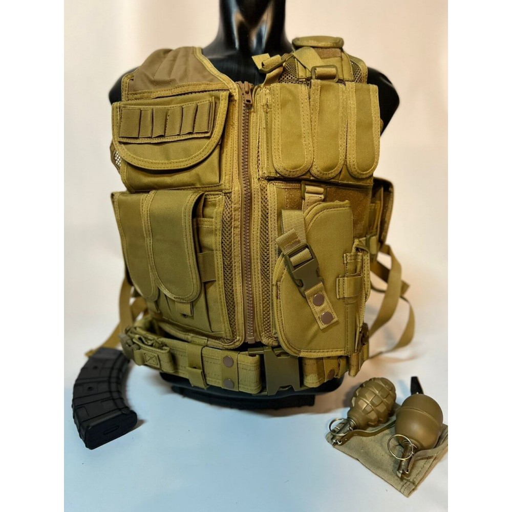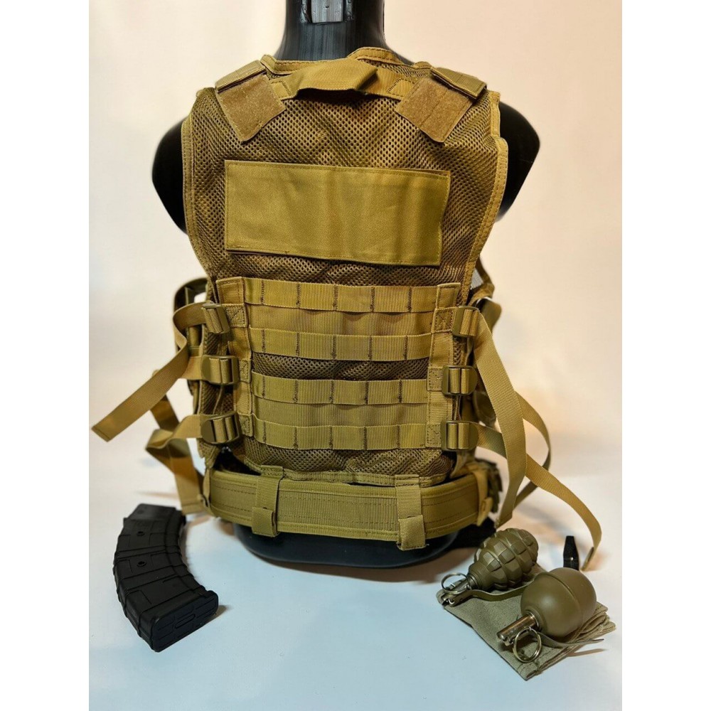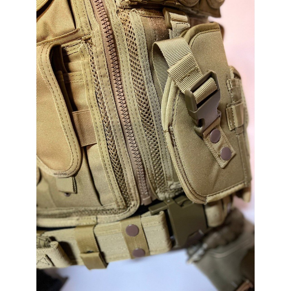 Изготовлен из качественных и прочных материалов. Специфика разгрузочного жилета «Спецназ 3» заключается как в его материале - плотная и прочная ткань и сетка, структуре - система креплений, форма жилета и его функциональность, так и в составных комплектующих - подсумки и ремень, кобура, которые поставляются в комплекте.